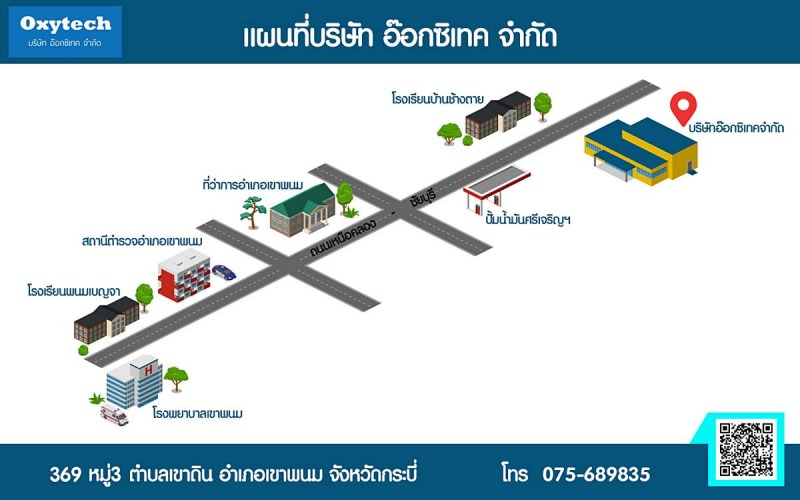 สำนักงานใหญ่ บริษัท อ๊อกซิเทค จำกัด สาขาเขาดิน เลขที่ 369 หมู่ 3 ตำบลเขาดิน อำเภอเขาพนม จังหวัดกระบี่ 81140 ติดต่อ 0-7568-9835